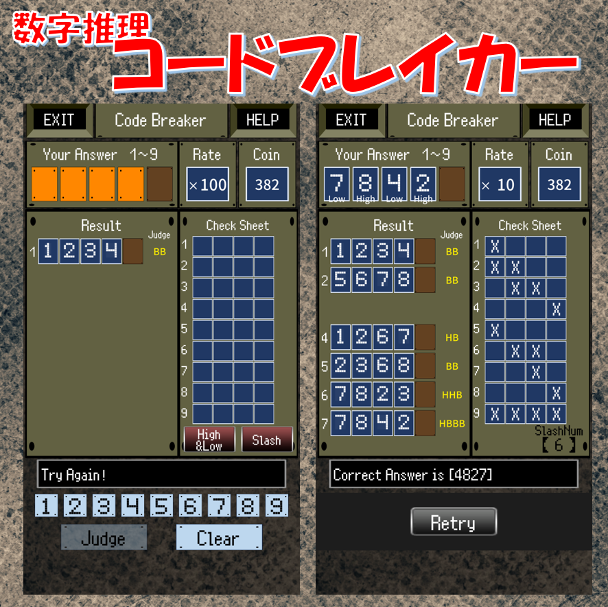 3~5桁モードが選択でき、それぞれ使う数字が5~9個の難易度が選べます。困ったときにはお助けアイテムもありますので、サクッと遊びたい人にも、じっくり遊びたい人にもオススメです!